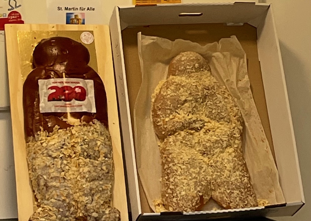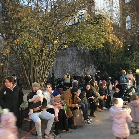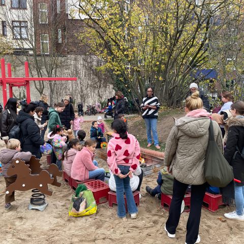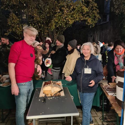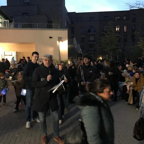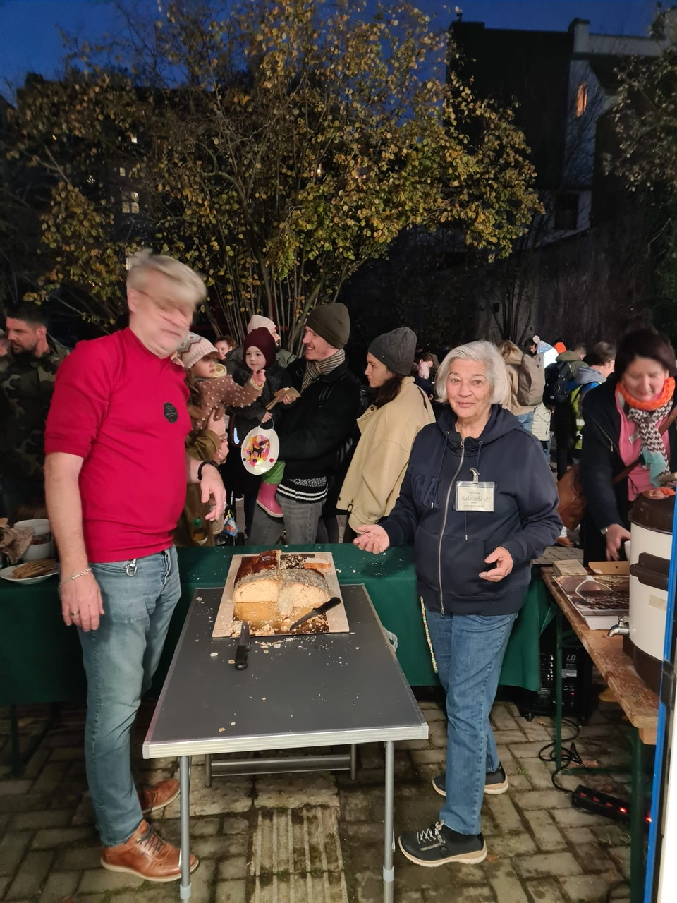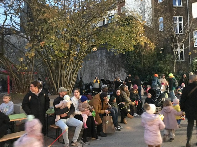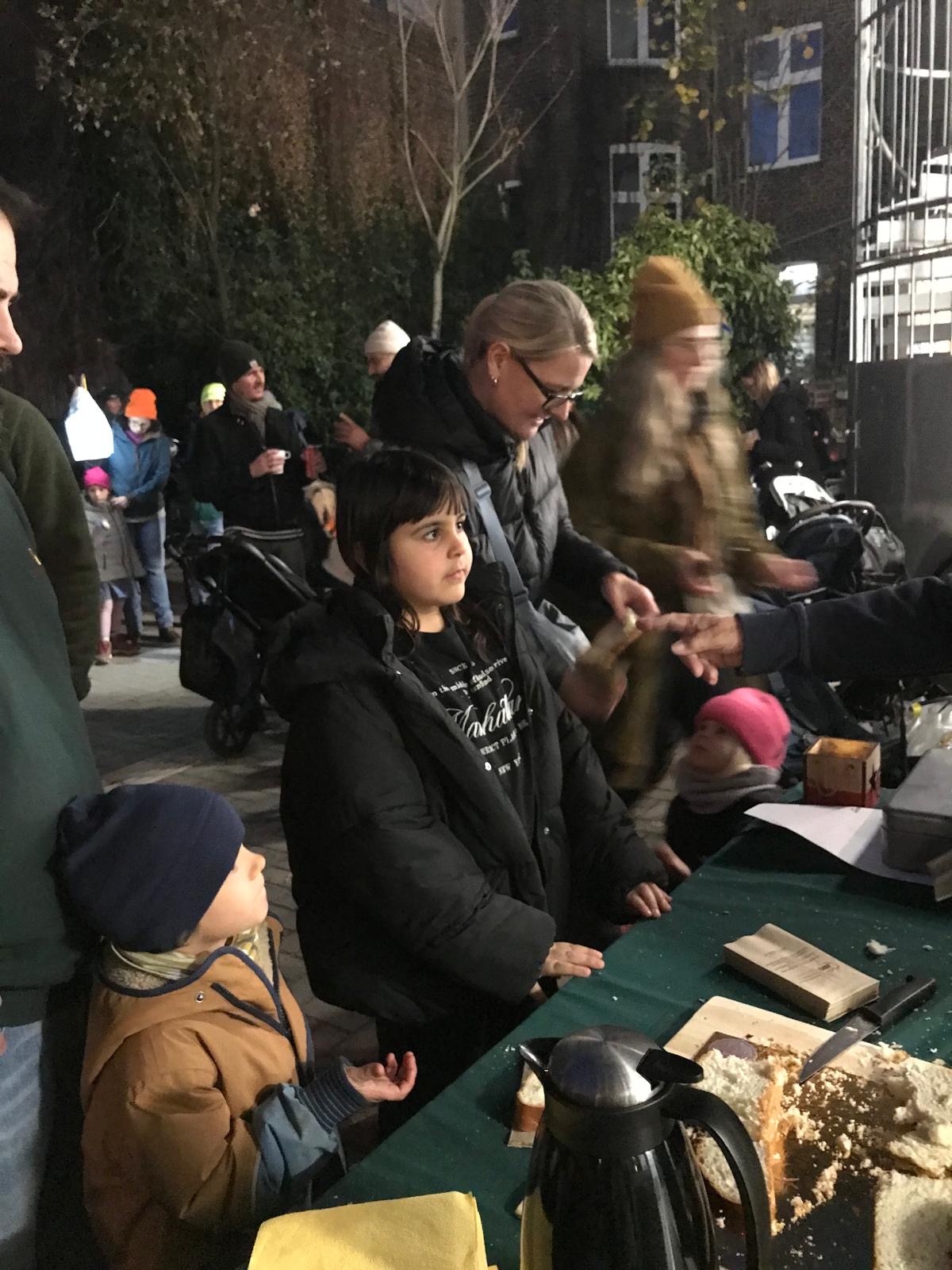 TEILEN lag auch besonders im Sinn der Spieloase – dieses Jahr konnte dank einer besonderen Spendenaktion der Stadtsparkasse Düsseldorf ein weiterer Spenden-Weckmann von 80 cm zur Verfügung stehen. Wir bedanken uns hier auch bei unserer Vereinsfrau, die alle Jahre wieder den großen Weckmann spendet. Die Martinsfeier im Innenhof wurde begleitet von Musikern der Clara-Schumann-Musikschule, die fleissig den Umzug der vielen Kleinen und Großen untermalten. Mit großem Vergnügen konnten alle Kinderpunsch, Kakao, Glühwein, Stockbrot und die Weckmänner genießen und glücklich und zufrieden den Heimweg antreten.