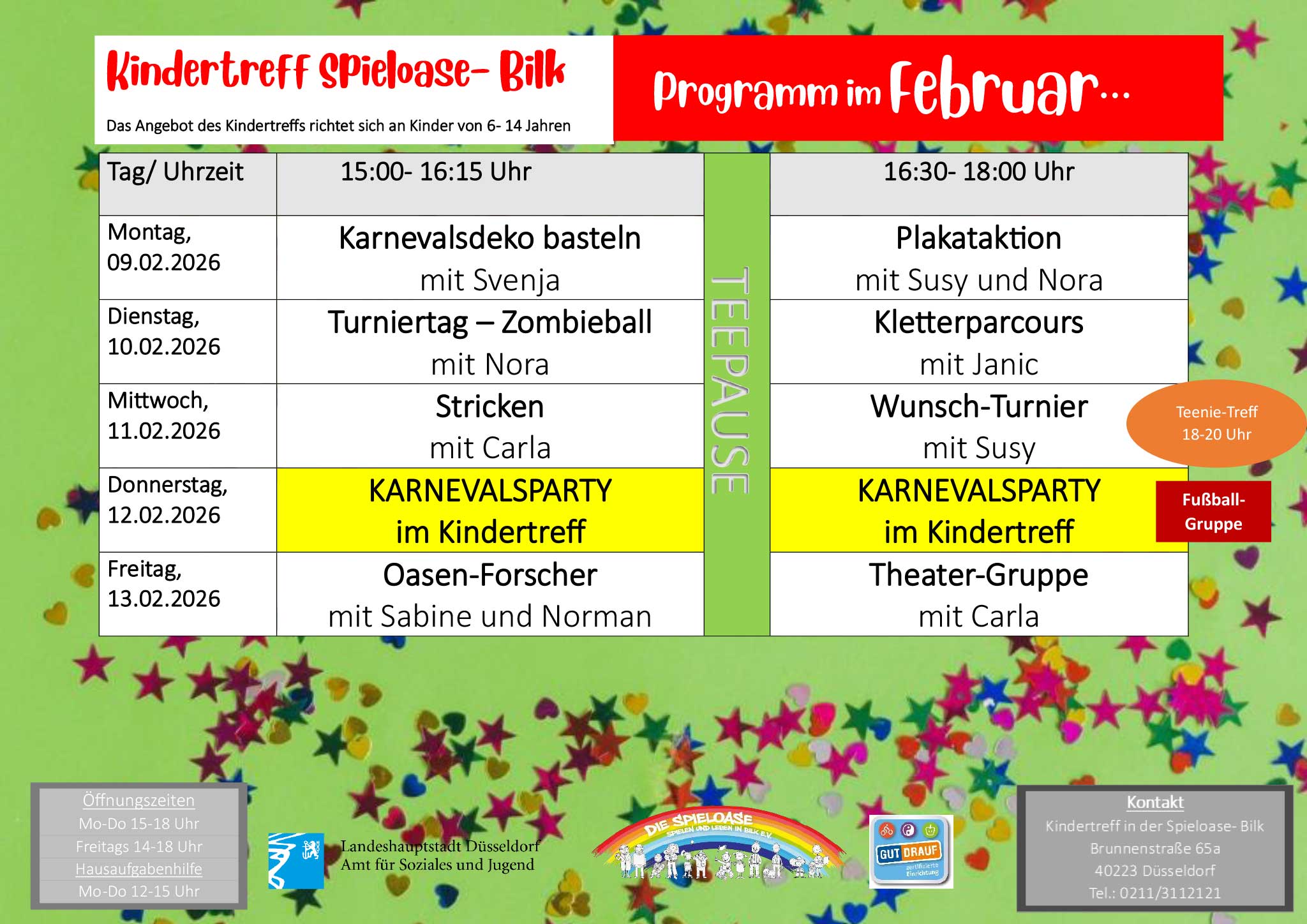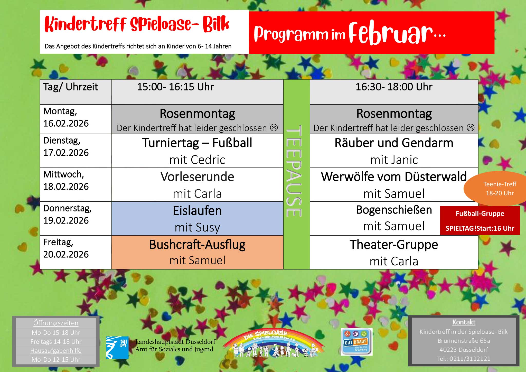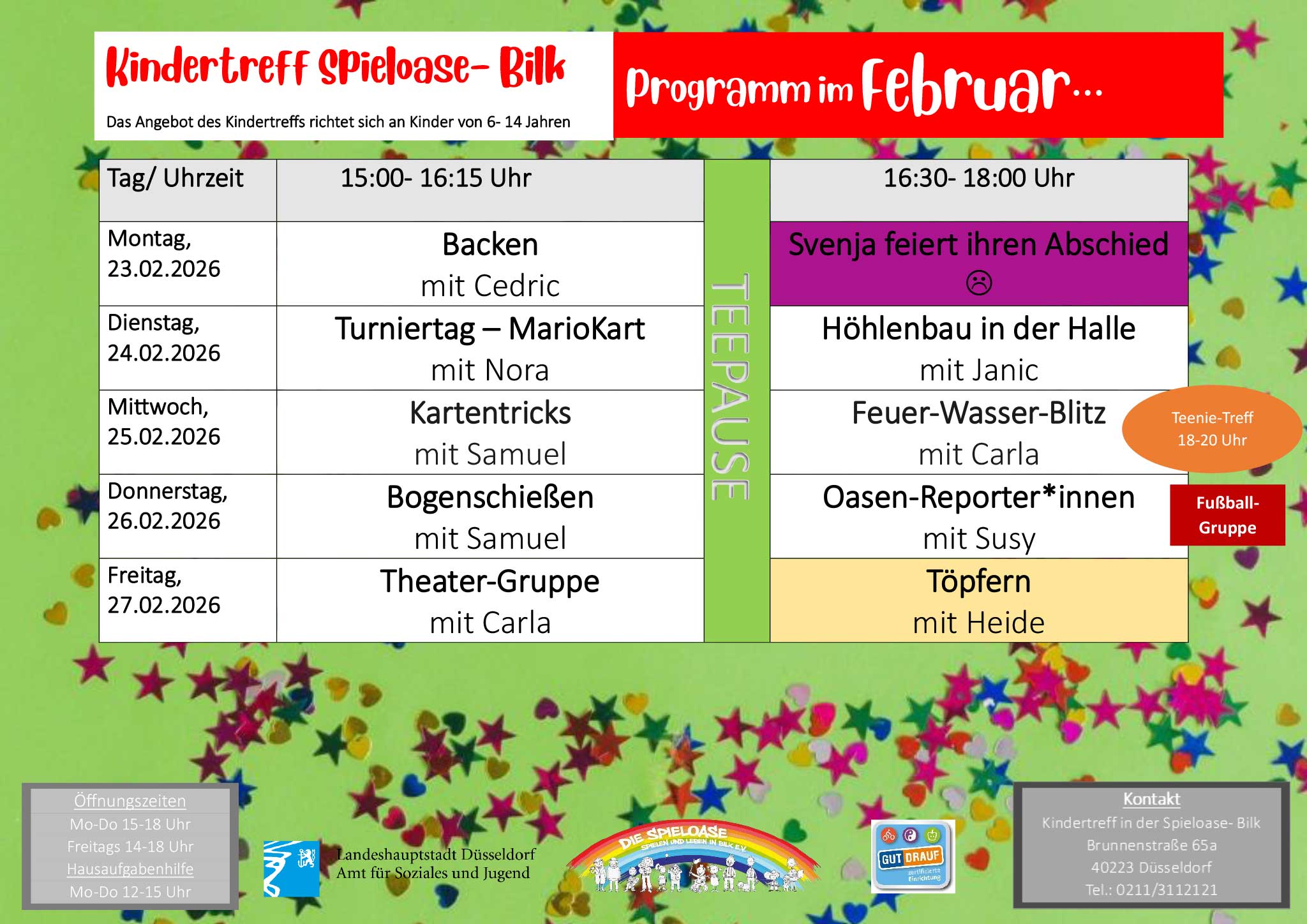 Brunnenstraße 65a 40223 Düsseldorf Kindertreff: 0211.3112121 Verein: 0211.7356192 E-Mail: info@spieloase-bilk.de
