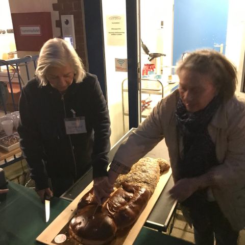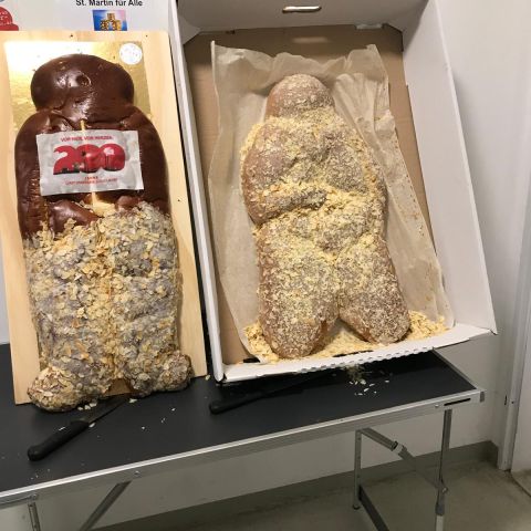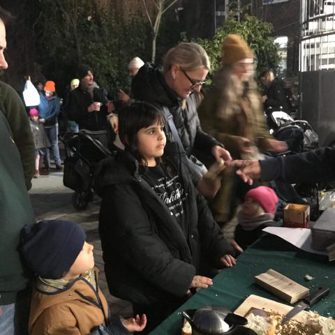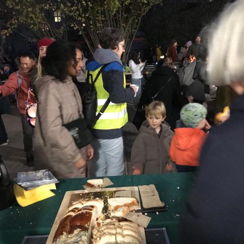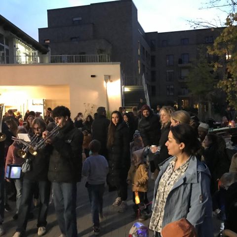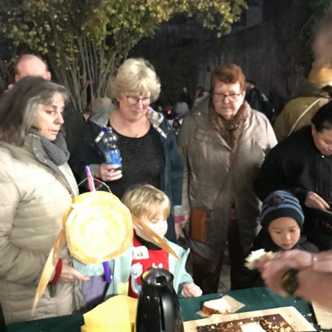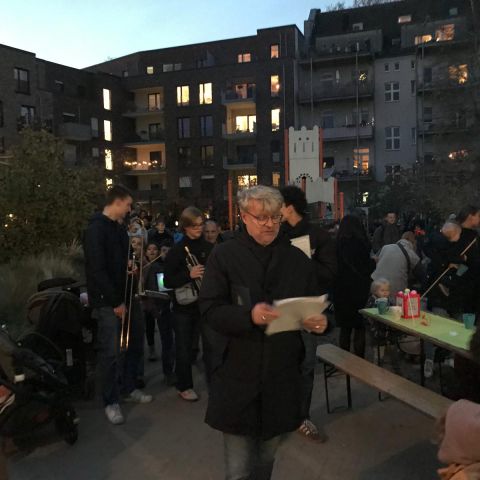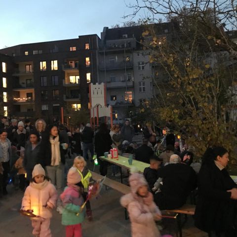 TEILEN lag auch besonders im Sinn der Spieloase – dieses Jahr konnte dank einer besonderen Spendenaktion der Stadtsparkasse Düsseldorf ein weiterer Spenden-Weckmann von 80 cm zur Verfügung stehen. Wir bedanken uns hier auch bei unserer Vereinsfrau, die alle Jahre wieder den großen Weckmann spendet. Die Martinsfeier im Innenhof wurde begleitet von Musikern der Clara-Schumann-Musikschule, die fleissig den Umzug der vielen Kleinen und Großen untermalten. Mit großem Vergnügen konnten alle Kinderpunsch, Kakao, Glühwein, Stockbrot und die Weckmänner genießen und glücklich und zufrieden den Heimweg antreten.