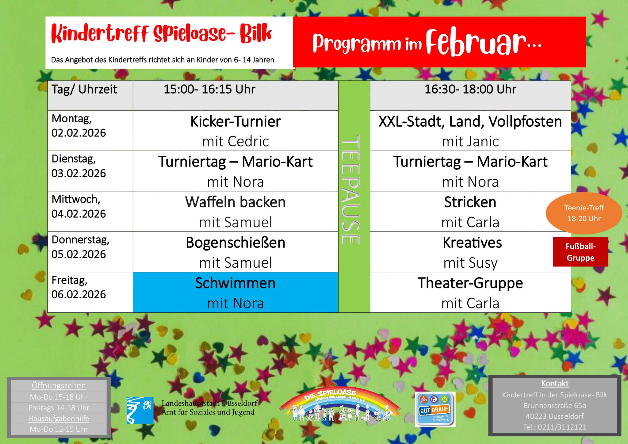 Brunnenstraße 65a 40223 Düsseldorf Kindertreff: 0211.3112121 Verein: 0211.7356192 E-Mail: info@spieloase-bilk.de